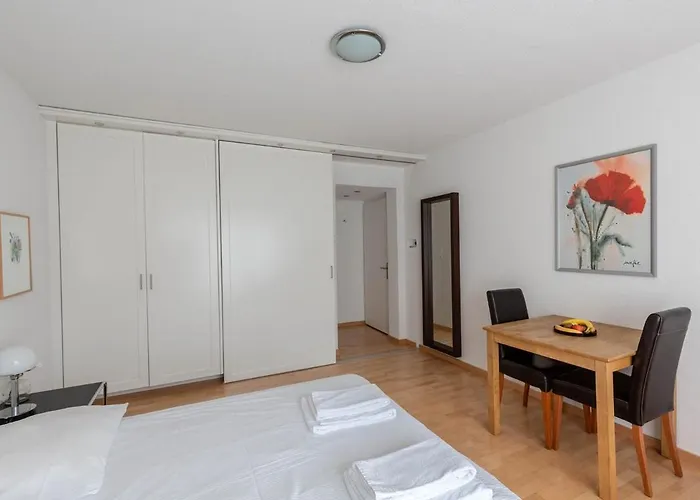 Diese 1-Zimmer-Apartments ist in 1 Kilometer Entfernung vom Opernhaus Zürich sowie in unmittelbarer Nähe vom Sechseläutenplatz gelegen. Dieses Apartment liegt im Viertel Niederdorf. Außerdem liegt diese Unterkünfte in 7 Fußminuten Entfernung vom Lindenhof.